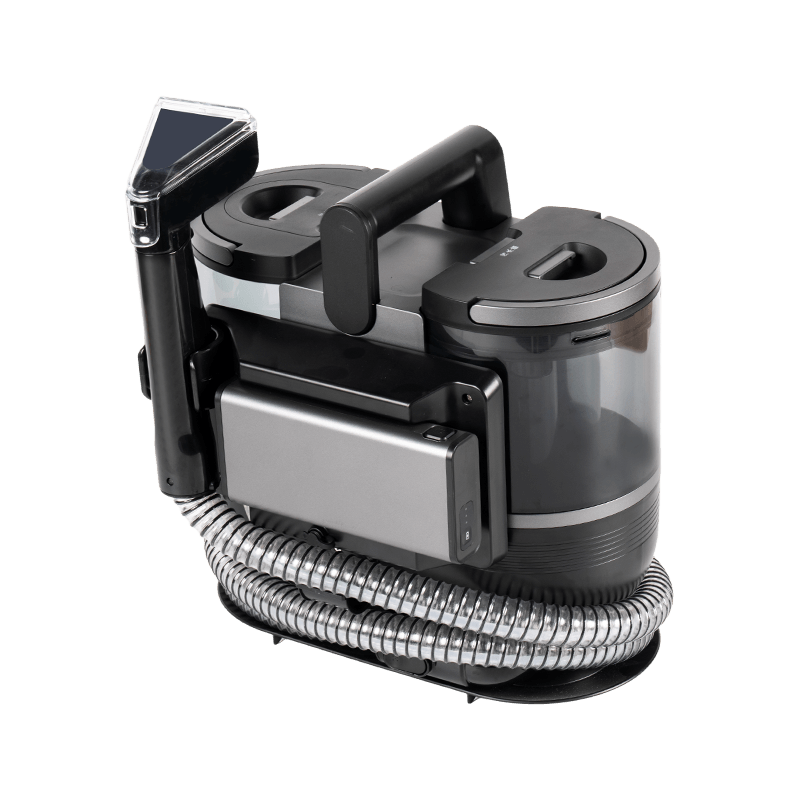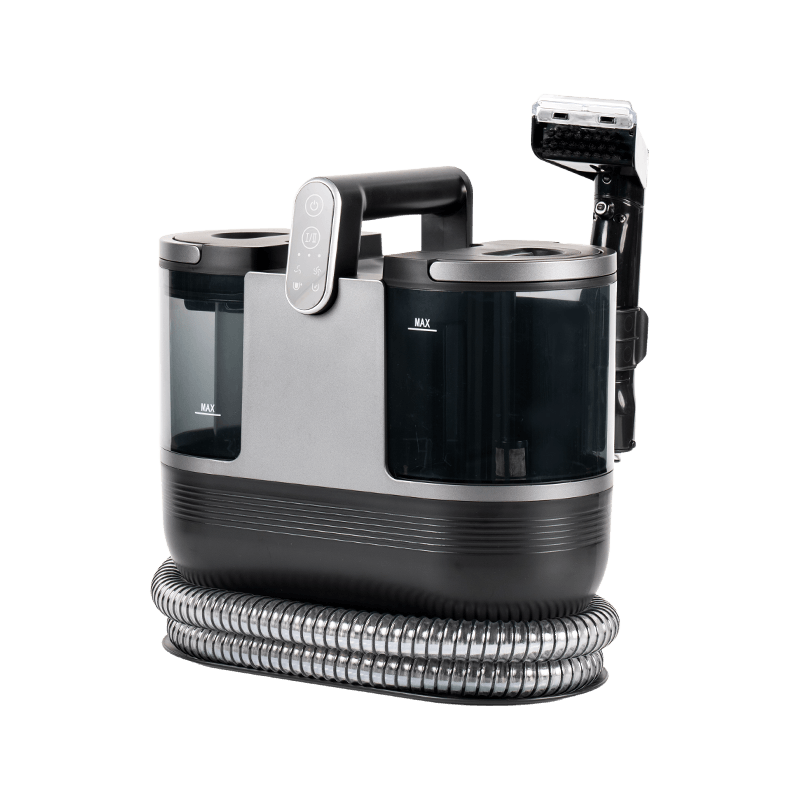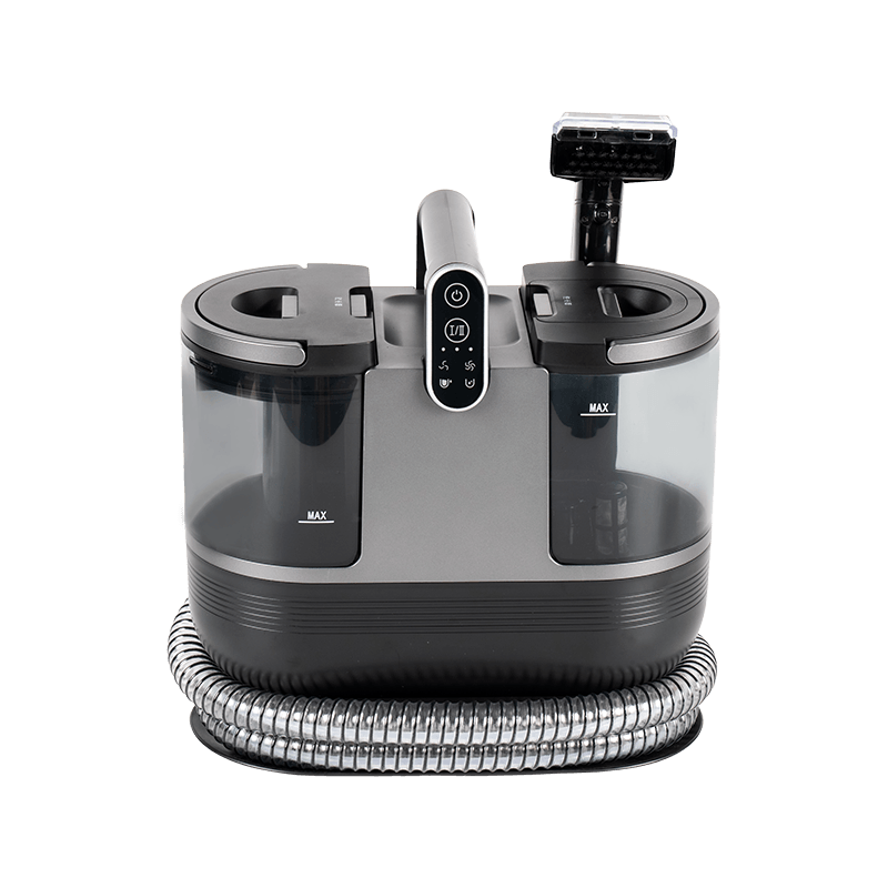 O limpador 3 em 1 DY-506AC combina pulverização de água, esfregamento e sucção de esgoto, e oferece água quente a 60 °C e vapor para lidar com manchas difíceis. Possui um tanque de água limpa de 1600 ml com tampa removível e um tanque de água suja de 950 ml marcado com “max” para indicar o nível máximo de água. Com sucção de 15 kpa, ele pode aquecer até 100°±5° em apenas 15 segundos para uma limpeza profunda. Pesando 4,22 kg, ele vem com uma mangueira de 1,7 m e um cabo de alimentação de 4 m, permitindo uma limpeza extensa. Além disso, possui impermeabilização IPX, dois tanques grandes, 4 escovas substituíveis, uma cabeça de escova multifuncional, sucção forte de alta pressão e autolimpeza conveniente da tubulação. O painel é claro e altamente responsivo.